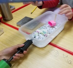 Students learn about wind erosion in the desert and use a kit of materials supplied by Asombro to test the effects of three different types of ground cover on dust created by wind erosion. They then design and test their own engineering solution to reduce soil erosion by wind.